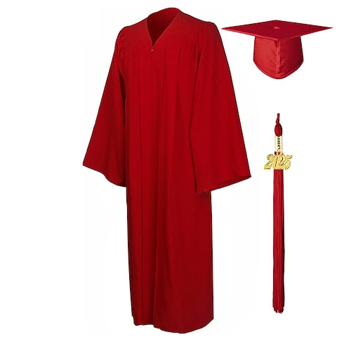 mattes Abschlusskleid, Kappe, Quaste, Set 2025 für High School und Bachelor