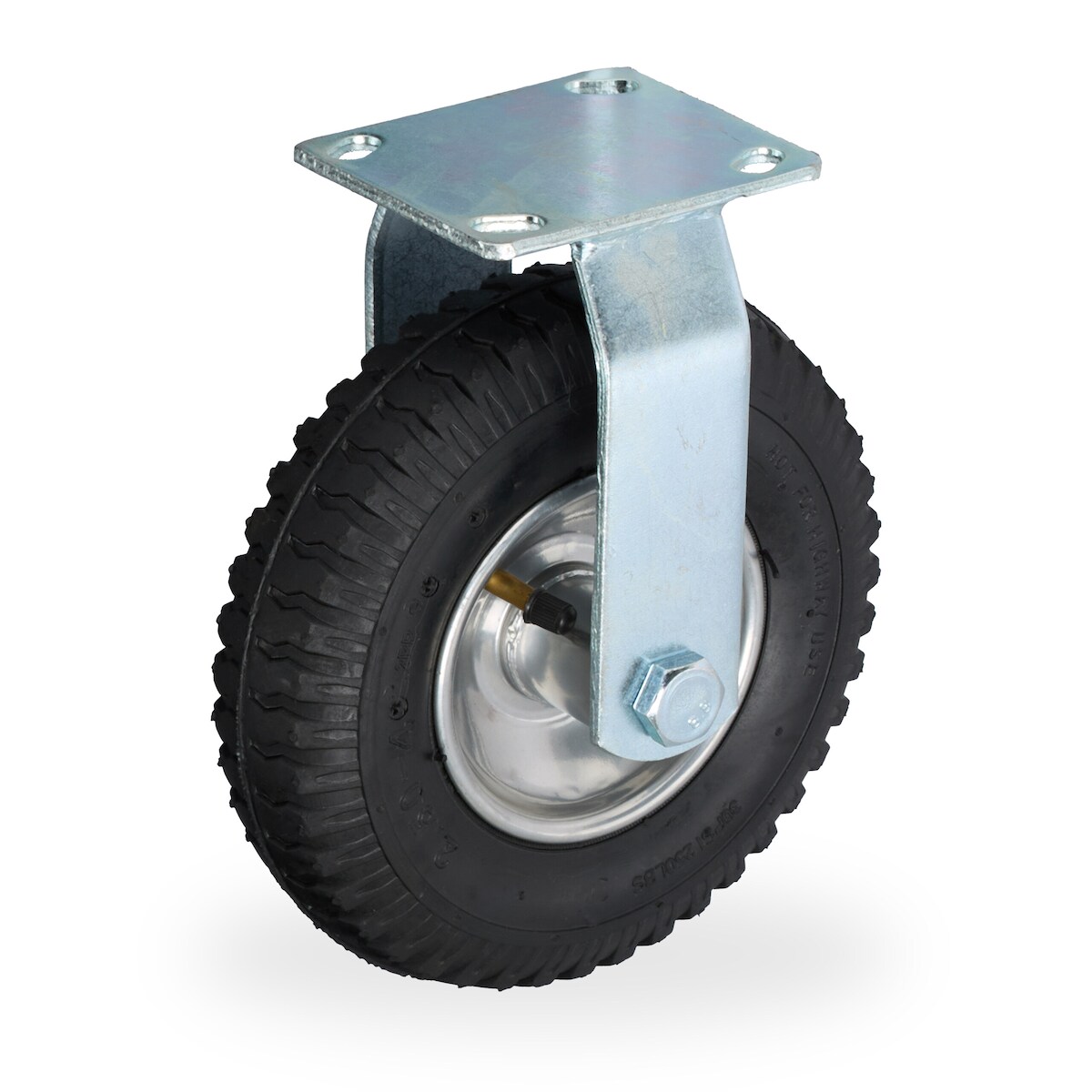 Relaxdays Bockrolle, 2.50-4, Traglast 120 kg, Gummi, Stahlplatte, luftbereift, Schwerlastrad, Gummirolle, schwarz/silber