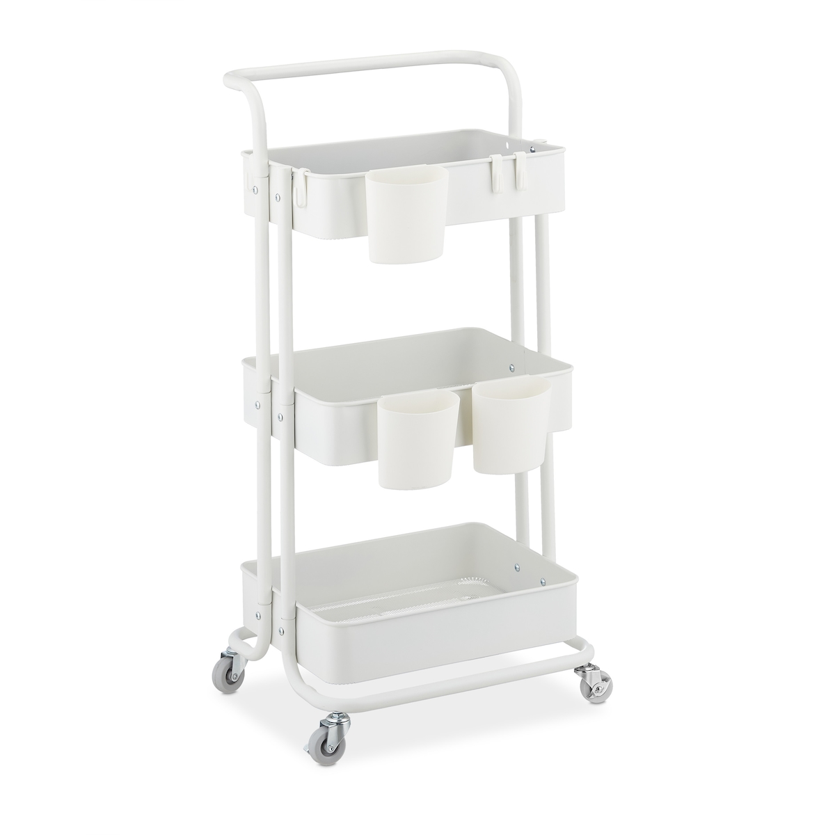 Relaxdays Rollwagen, 3 Etagen, 2 Bremsen, Allzweckwagen für Küche und Büro, Rollregal HBT 86x38x39 cm, Metall, weiß