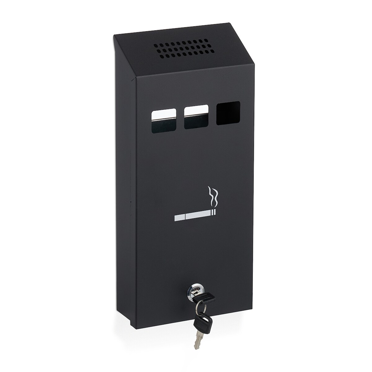 Relaxdays Wandaschenbecher für draußen, verschließbar, Metall, Aschenbecher Wandmontage, HBT: 32,5 x 15 x 6 cm, schwarz