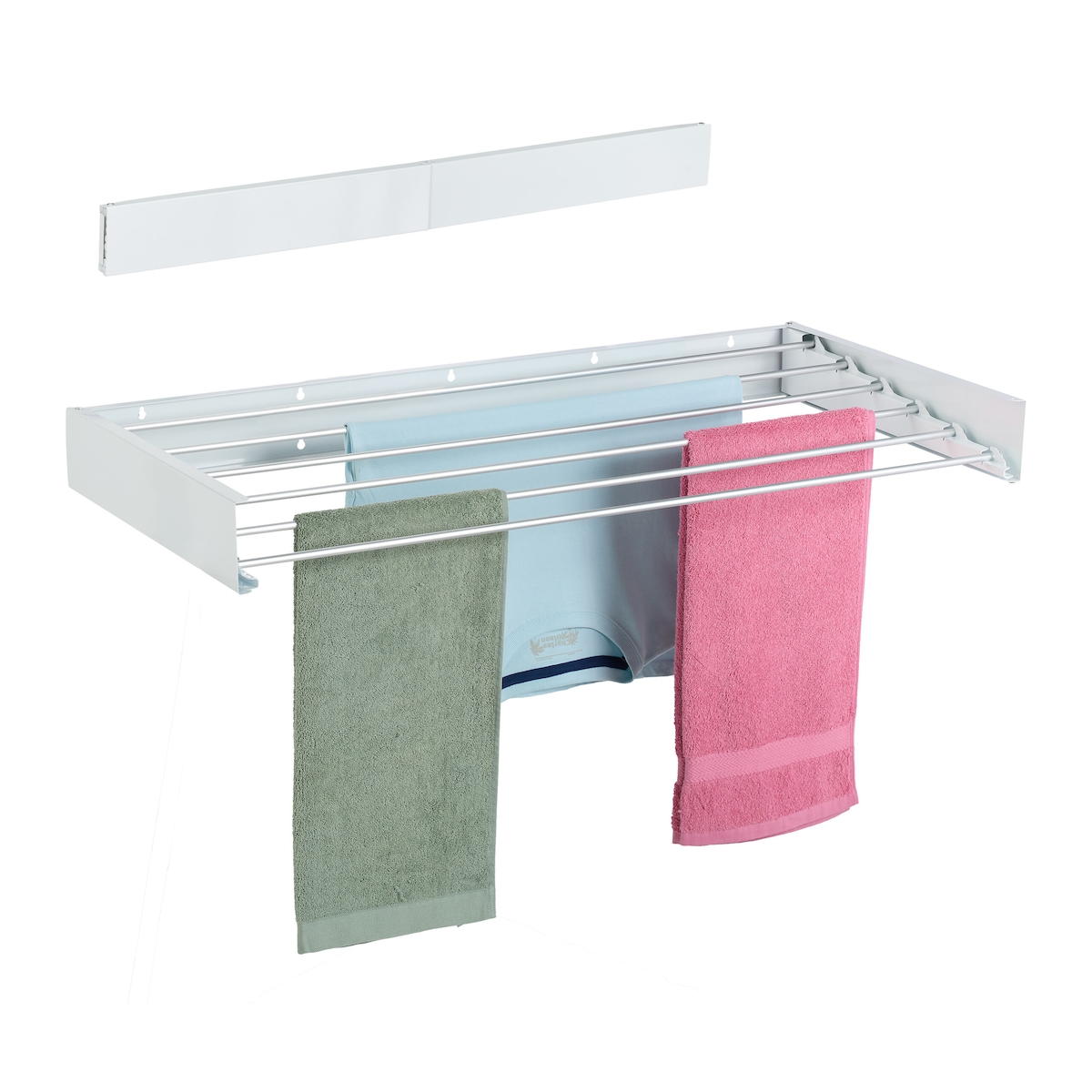 Relaxdays Wäscheständer Wandmontage, klappbar, HBT: 15 x 100 x 50 cm, innen & außen, platzsparender Wandtrockner, weiß