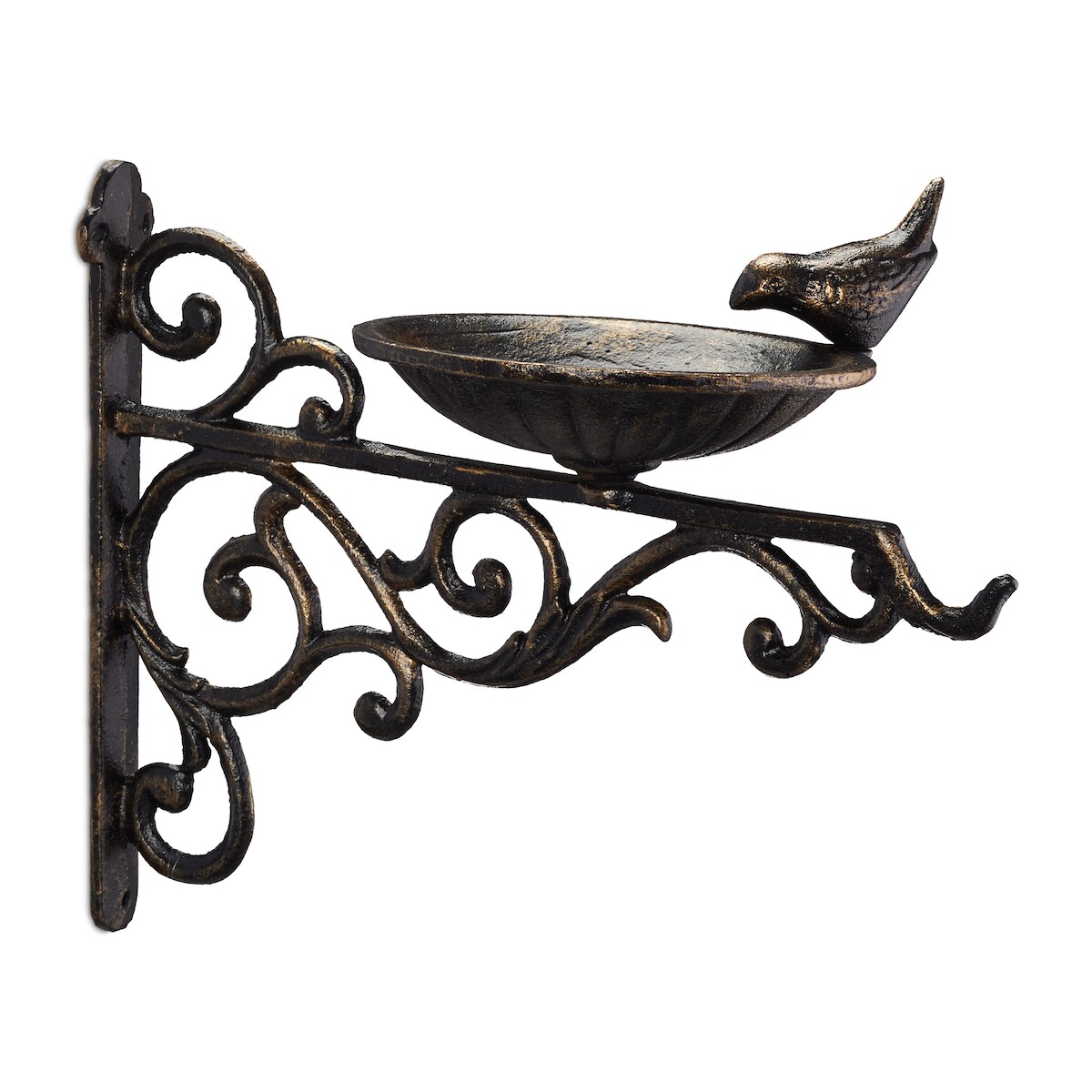 Relaxdays Vogeltränke Gusseisen, Wandmontage, wetterfest, Vintage Vogelbad Wildvögel, Gartendeko, HBT 24x28x14cm, bronze