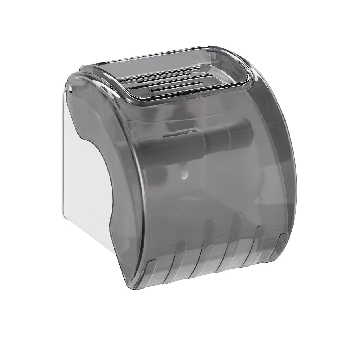 Relaxdays Toilettenpapierhalter mit Ablage & Abdeckung, Kunststoff Klopapierhalter HxBxT: 15 x 13,5 x 15 cm, grau/weiß
