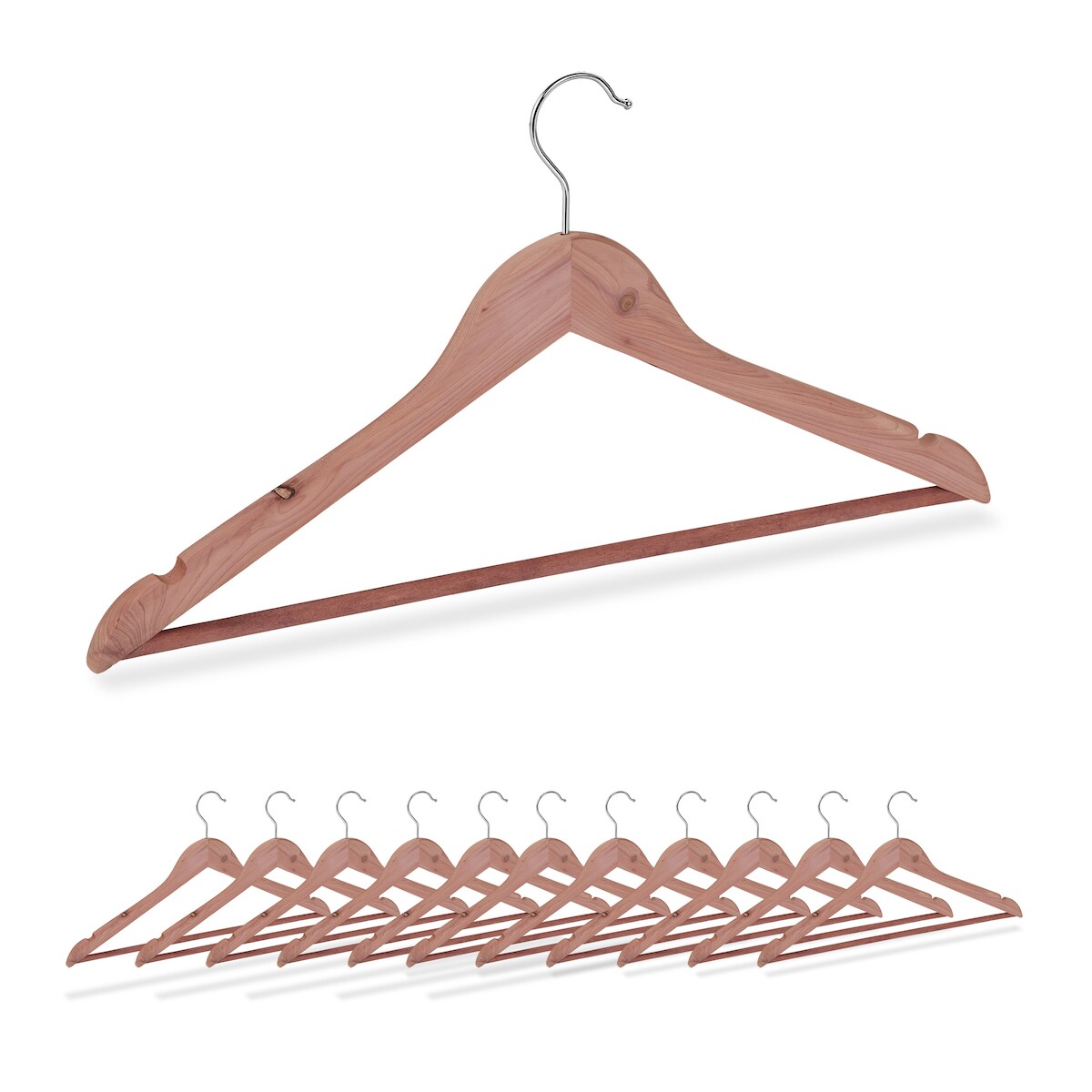 Relaxdays Kleiderbügel Zedernholz, 12er Set, Mottenschutz für Kleiderschrank, Hosensteg & Einkerbungen, Holzbügel, natur