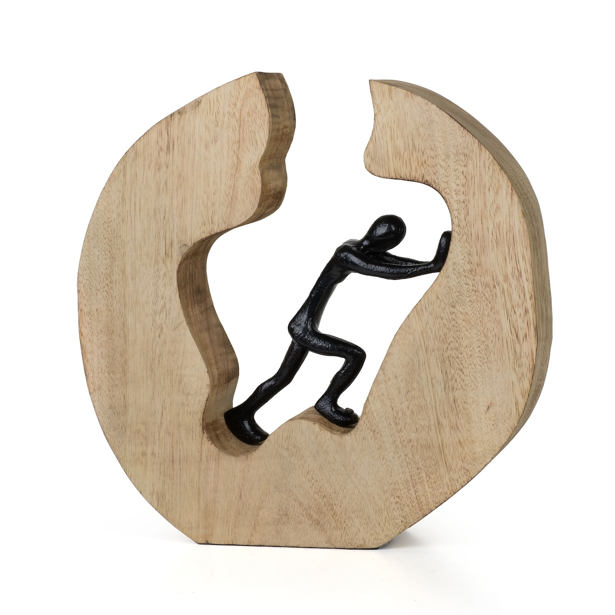 Moritz Dekofigur Push & Work Schwarz 28 cm aus Mangoholz und Aluminium Handarbeit Skulptur Symbol für Motivation und Kraft Dekofigur modern Unikat
