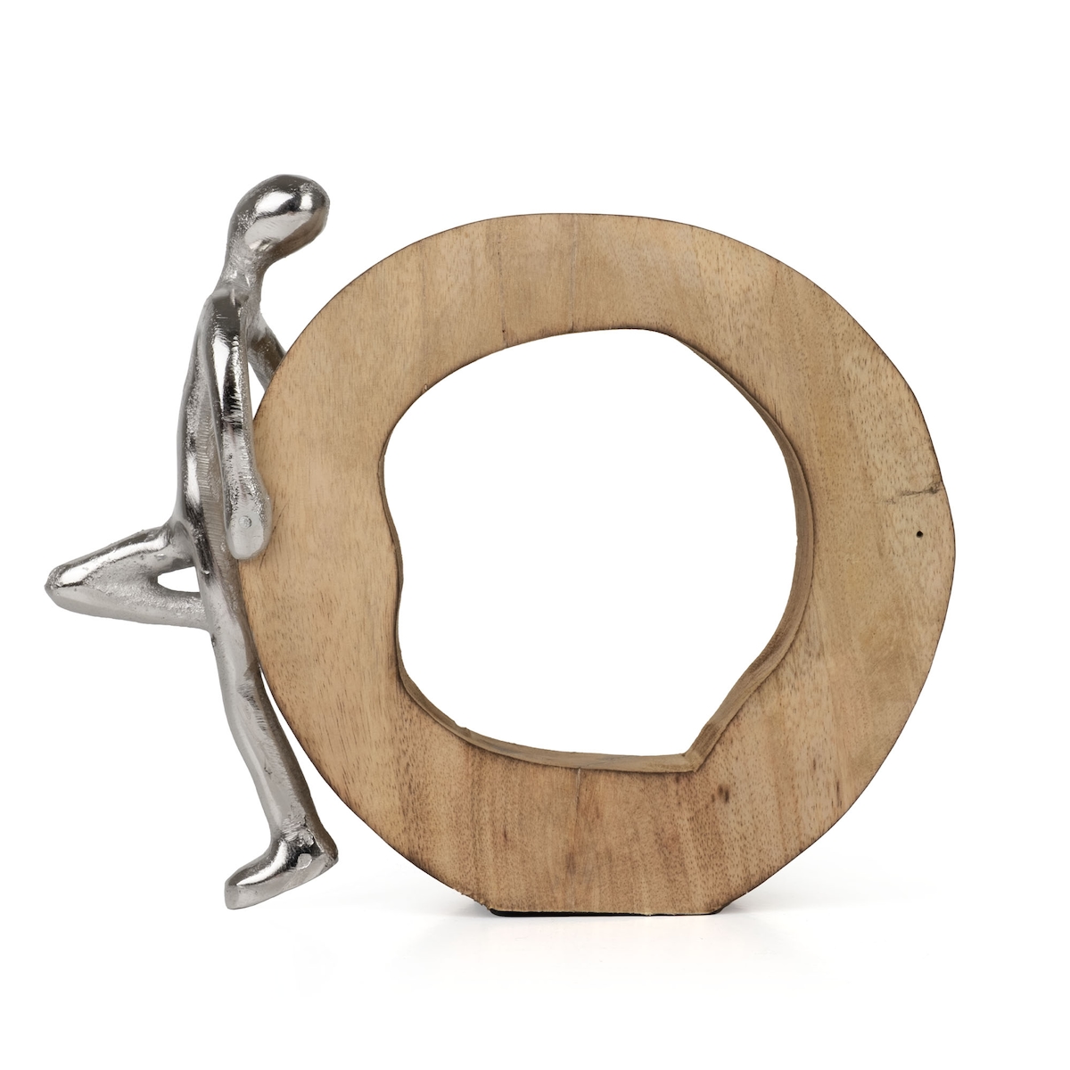 Moritz Dekofigur Stillness Silber 18 cm aus Mangoholz und Aluminium Skulptur mit Figur Symbol für Ruhe Gelassenheit und Balance moderne Handarbeit Dekoration