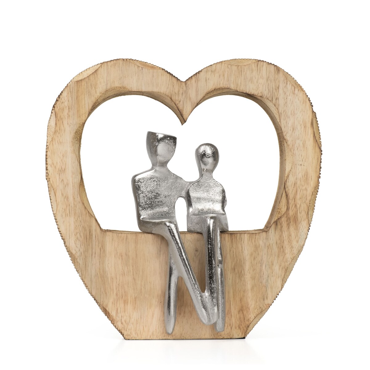 Moritz Dekofigur Heartbound 25,5 cm aus Mangoholz und Aluminium Skulptur im Herz Motiv mit zwei Personen Symbol für Liebe Vertrauen und Geborgenheit
