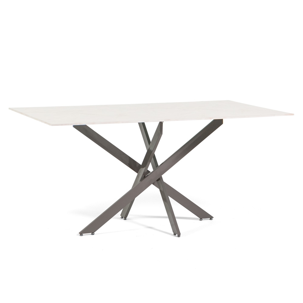 RATTATAN Innentisch 160x90 cm mit gehärteter Glasplatte und Metallbeinen, elegantes Design, ideal für Küche oder Esszimmer–MORGAN–Rosa Marmor/Taupe