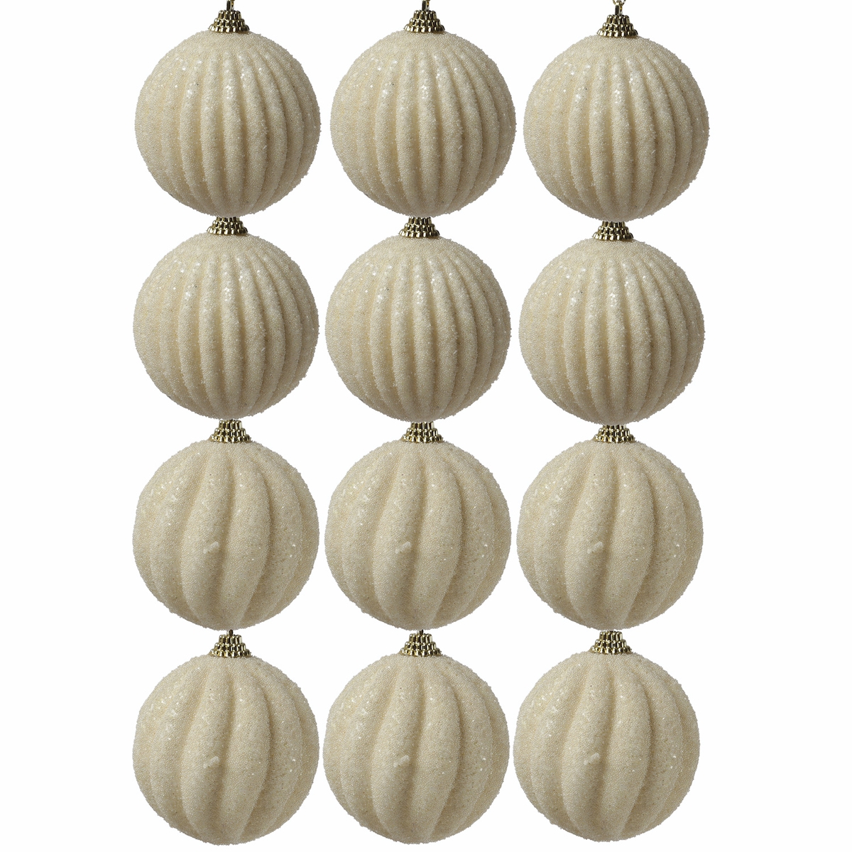 MARELIDA Christbaumkugeln Weihnachtskugeln bruchfest 2 Designs 8cm creme 12St.