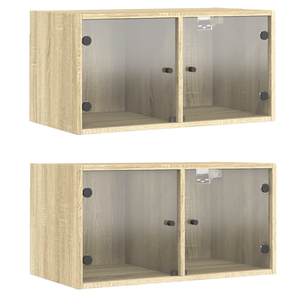 vidaXL Wandschränke mit Glastüren 2 Stk. Sonoma-Eiche 68,5x37x35 cm