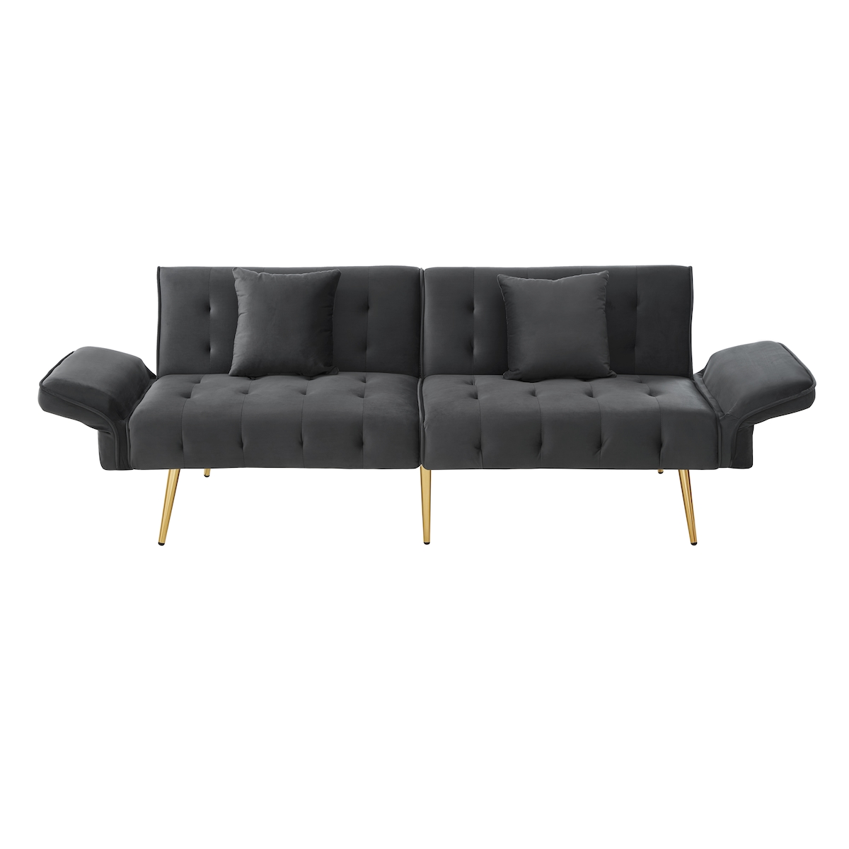 OKWISH Zweisitzer Sofabett 178x82x70 cm, verstellbare Rücken- & Armlehnen, Veloursstoff, Hochdichtes Schaum, Metallfüße, Modernes Wohnzimmer, grau