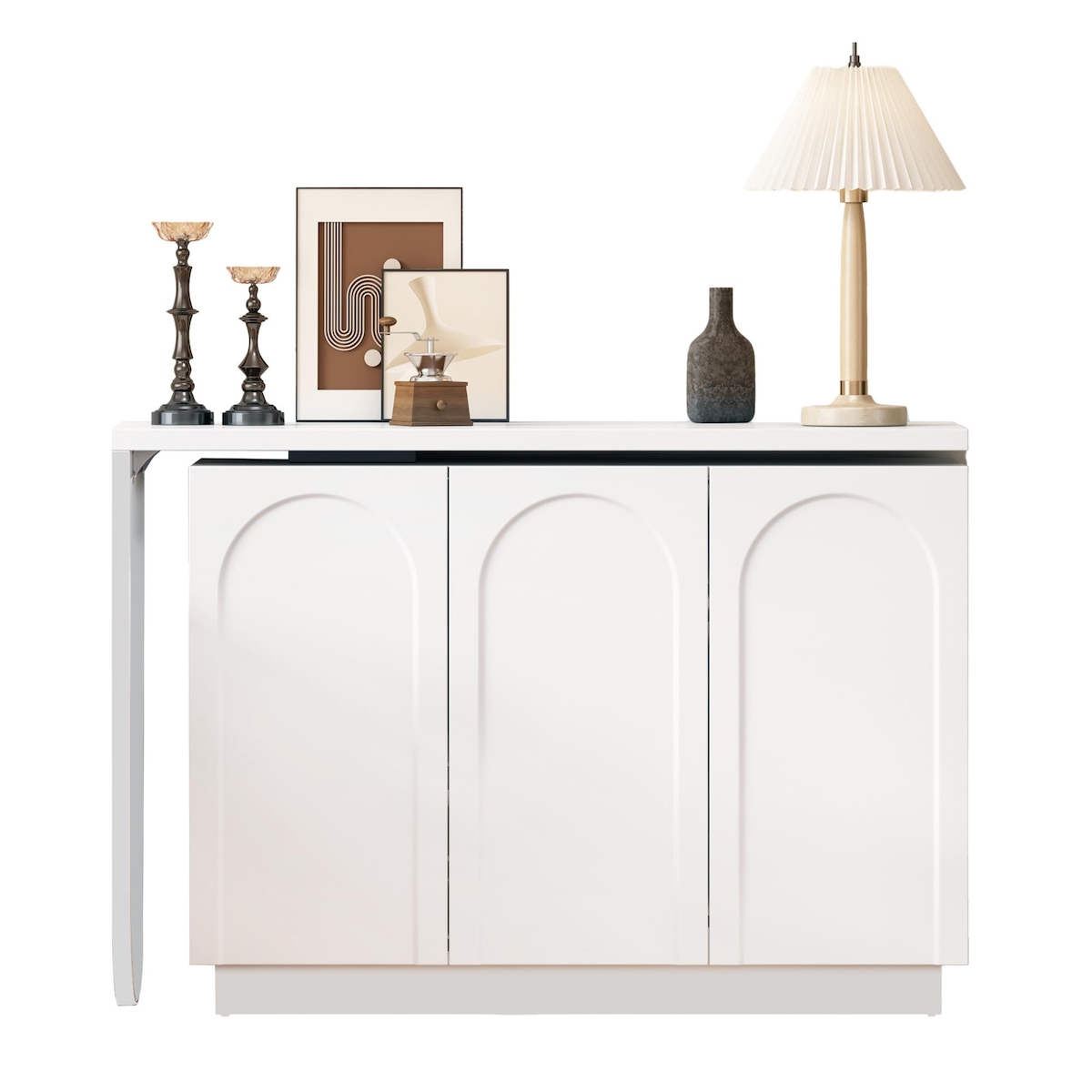 OKWISH Multifunktionaler Schreibtisch mit drehbarem Tisch, 110x40x75 cm, Stauraum mit höhenverstellbaren Einlegeböden, für Büro und Arbeitszimmer, Weiß