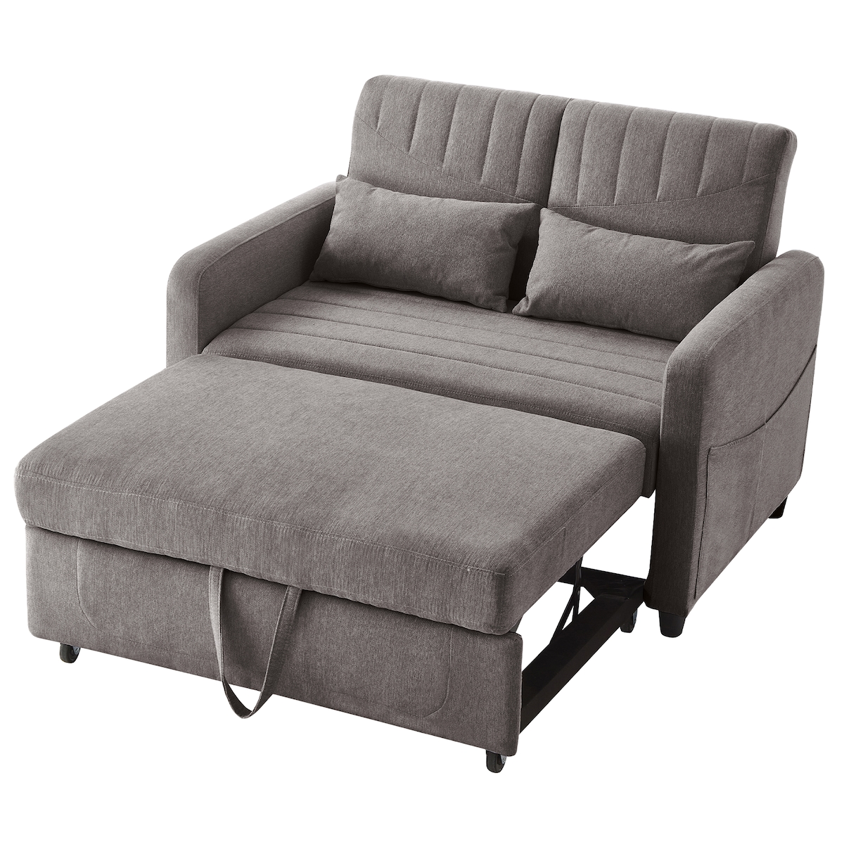 OKWISH Ausziehbares Sofabett 2-Sitzer 122x83x82 cm PU Wasserabweisend Hochdichter Schaumstoff 3-stufig verstellbare Rückenlehne Grau