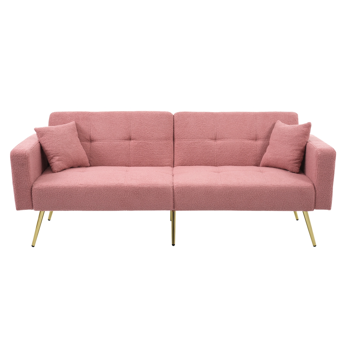 OKWISH Schlafsofa, mit Lammwolloberfläche, verstellbar, mit vergoldeten Beinen, praktischen Seitentaschen, für Gästeübernachtungen, Rosa, 175x64x75 cm