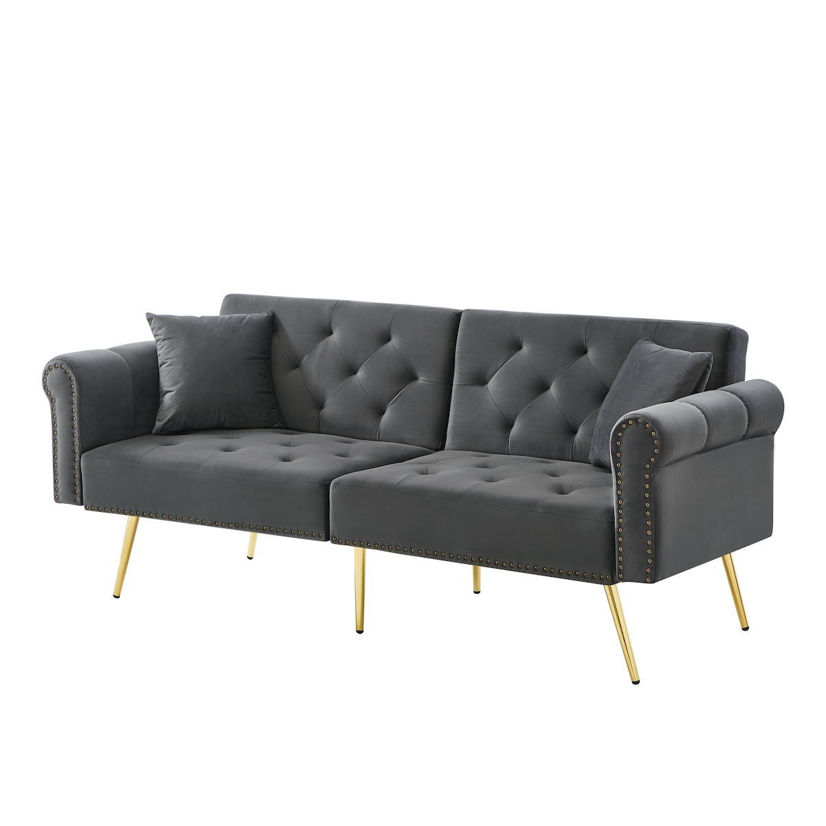 OKWISH 2-Sitzer Schlafsofa mit verstellbarer Rückenlehne, Samtstoff, vergoldete Metallfüße, 3 Positionen, 173x75x70 cm Schlafbereich, Grau