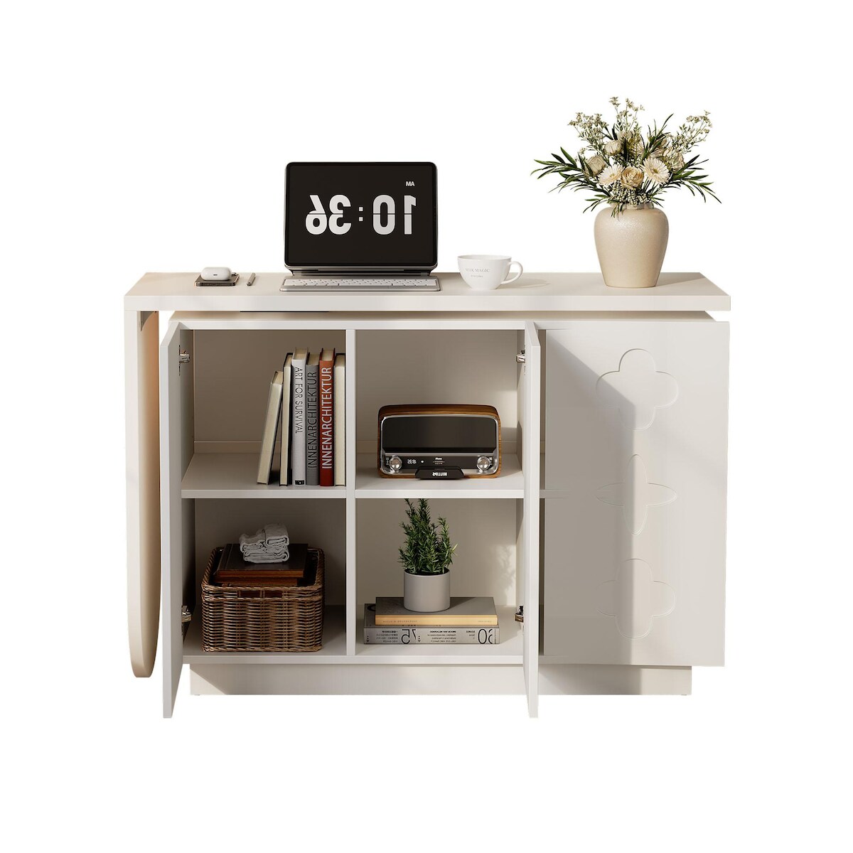 OKWISH Multifunktionaler Schreibtisch mit Stauraum, drehbar, höhenverstellbare Einlegeböden, 110x40x75 cm, ideal für Büro und Arbeitszimmer, Weiß