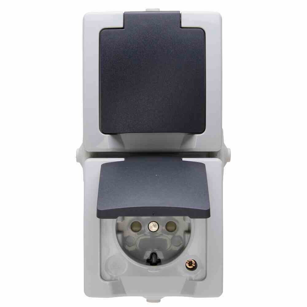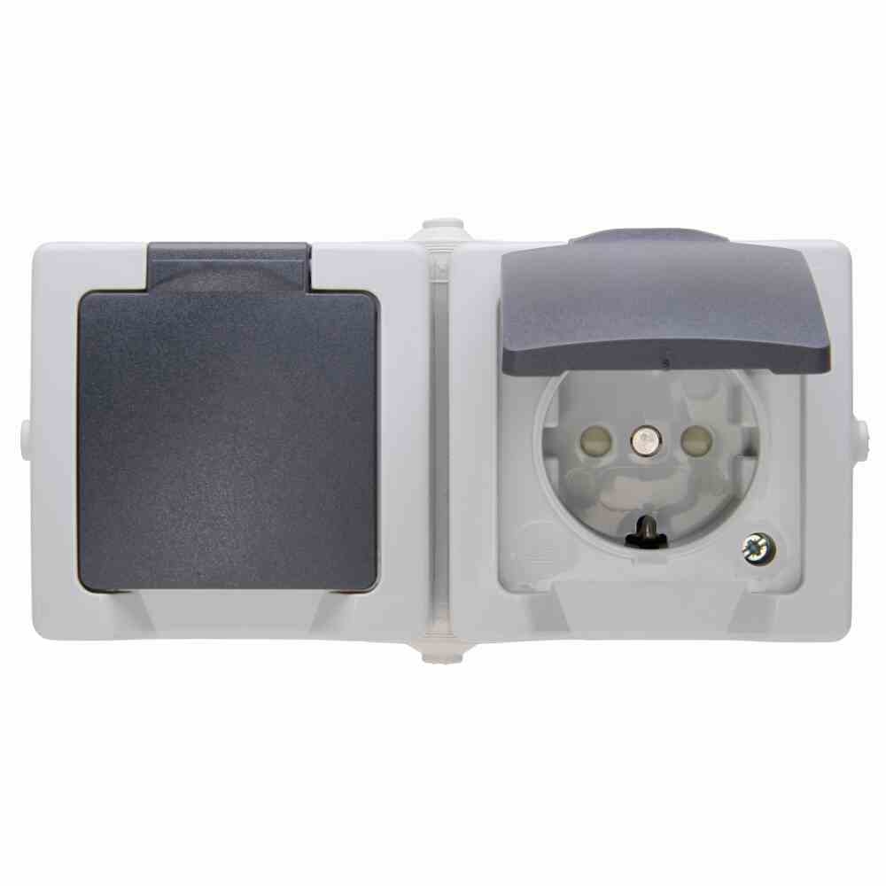 NAUTIC Steckdose, 2f, grau, matt, Aufputz, Mit erhöhtem Berührungsschutz, Aufputz, Mit erhöhtem Berührungsschutz