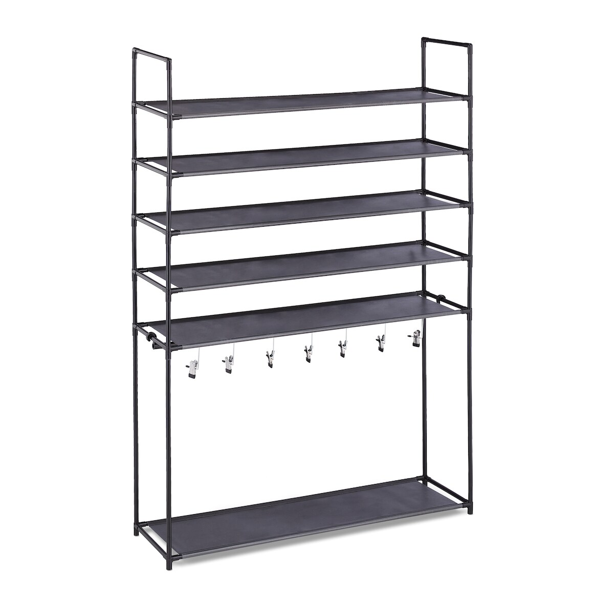 Relaxdays Schuhregal 6 Ebenen, Stecksystem, 20 Paar Schuhe, 7 Stiefelhaken, Metall & Stoff, Flur Schuhablage, schwarz