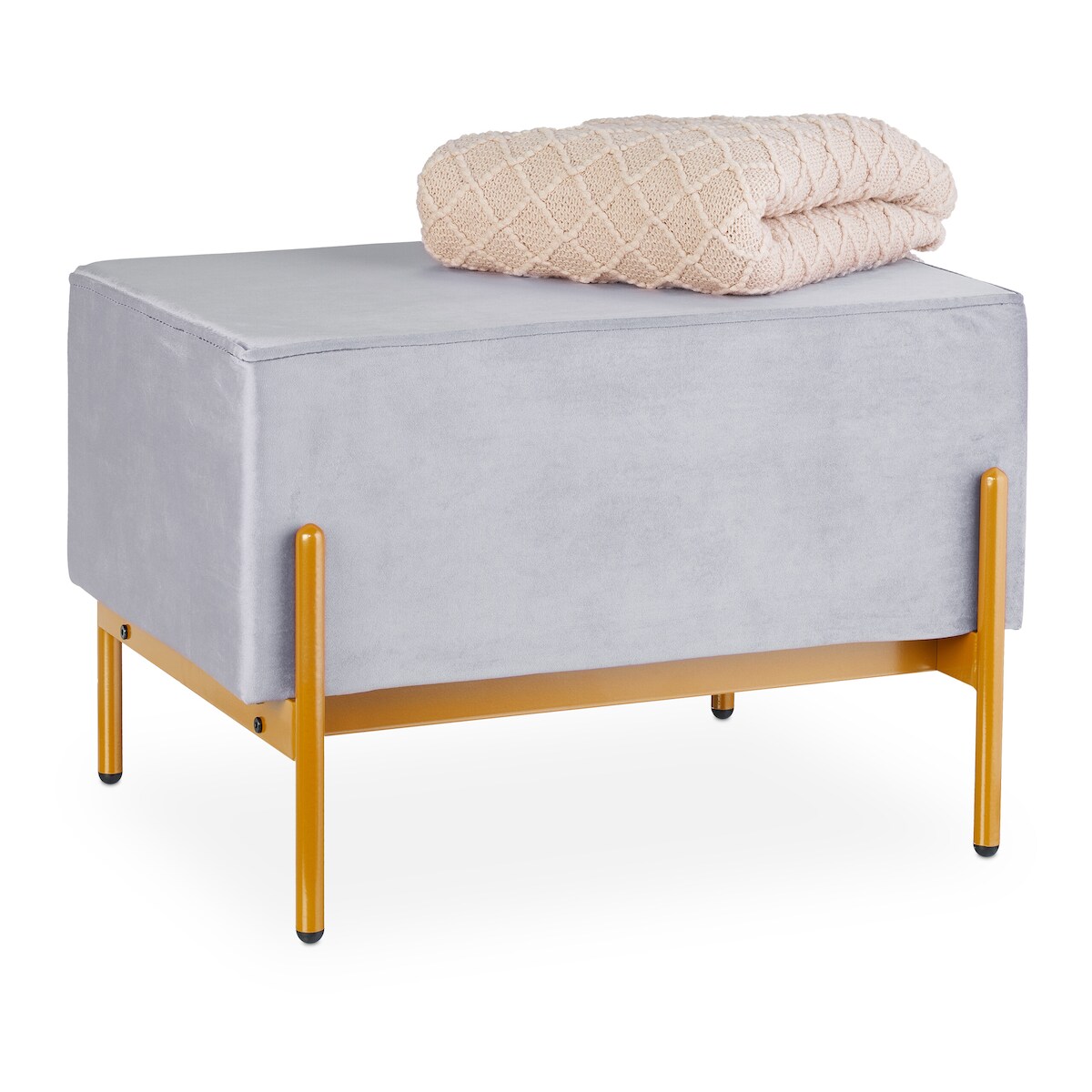 Relaxdays Sitzbank Samt, Polsterbank mit Metallfüßen, Samtsitzbank Schlafzimmer, Flur, HxBxT: 40 x 60 x 43 cm, grau