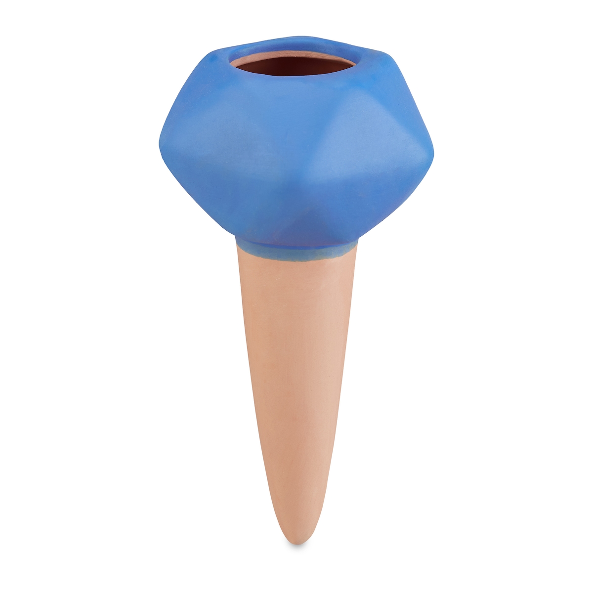 Relaxdays Bewässerungskugeln Ton, 4er Set, Durstkugeln Ø 6cm, Keramik, dosierte Pflanzen Bewässerung, terracotta/blau
