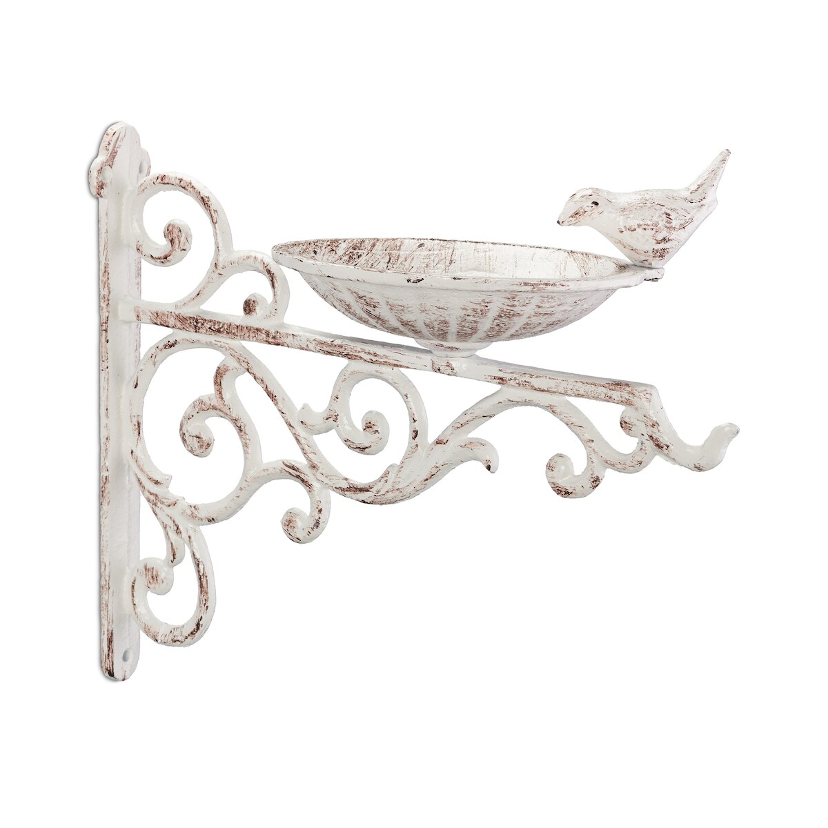 Relaxdays Vogeltränke Gusseisen, Wandmontage, wetterfest, Vintage Vogelbad Wildvögel, Gartendeko, HBT 24x28x14 cm, weiß