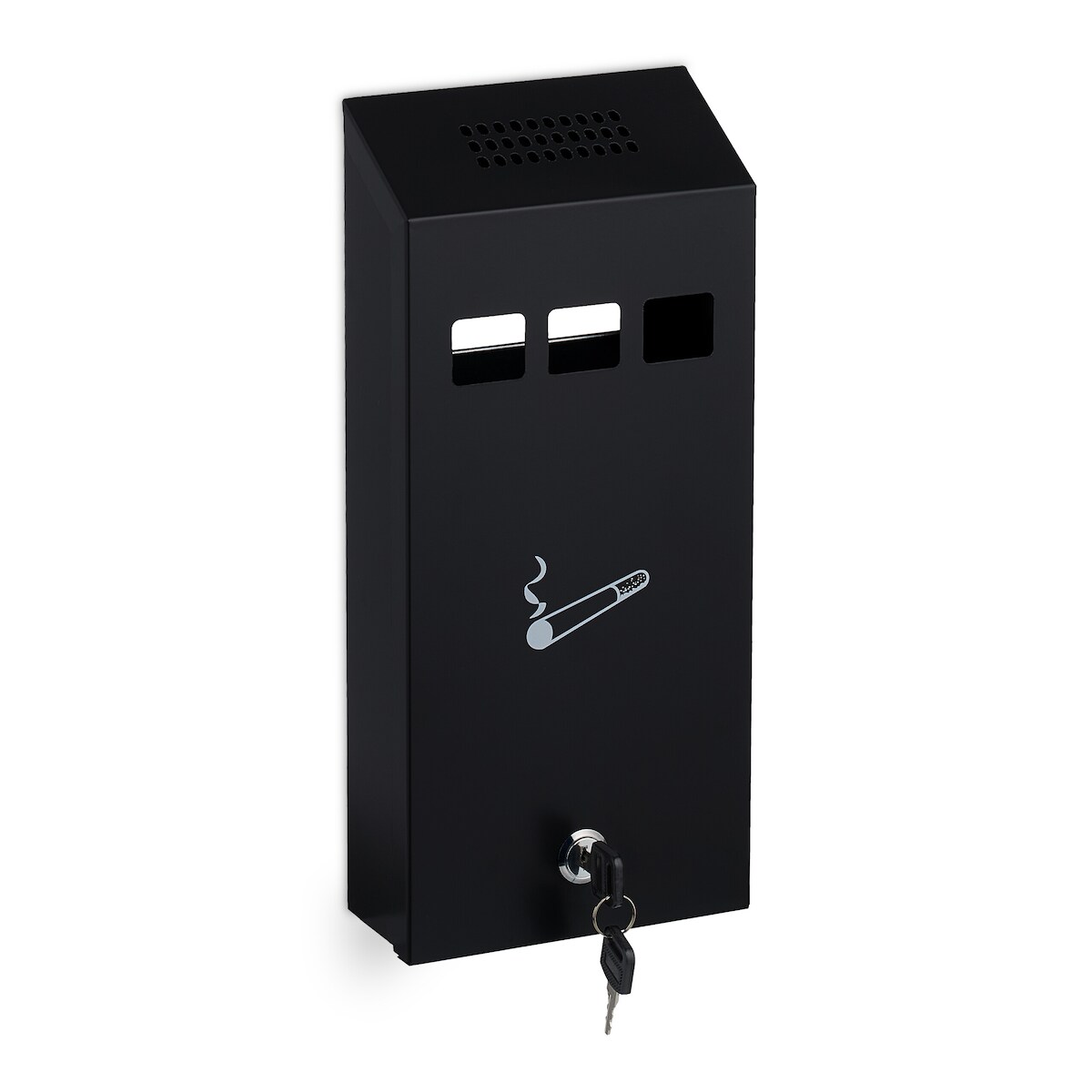Relaxdays Wandaschenbecher für draußen, verschließbar, Metall, Aschenbecher Wandmontage, HBT: 32,5 x 15 x 6 cm, schwarz