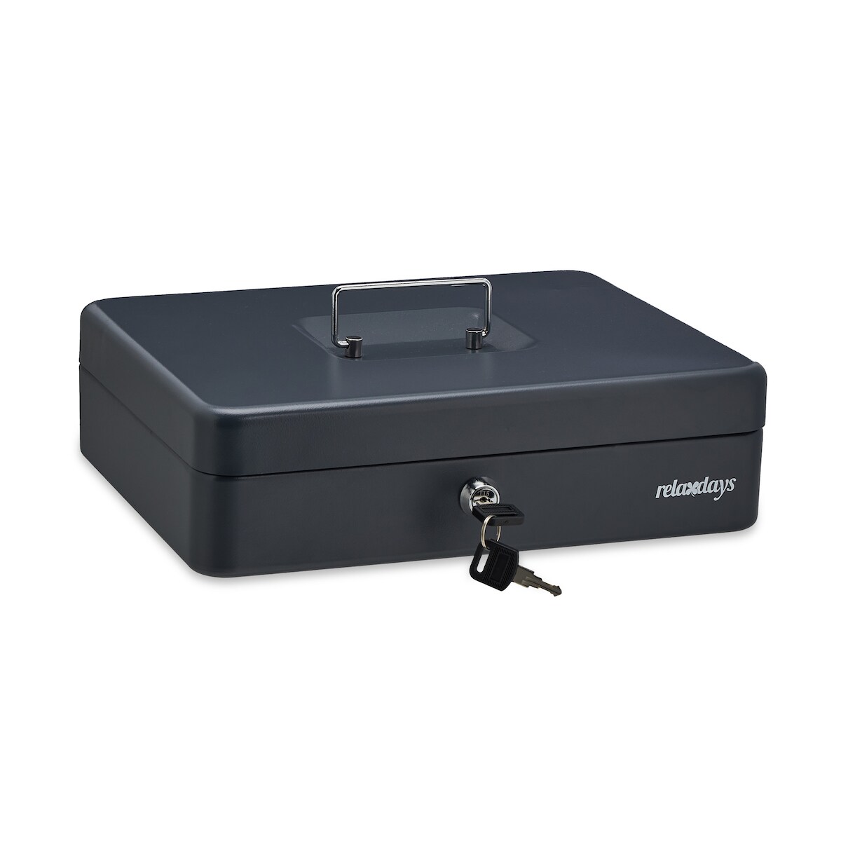 Relaxdays Geldkassette, abschließbar, Münzzählbrett, Stahl, 2 Schlüssel, Kleingeld & Scheine, 9 x 30,5 x 23,5 cm, grau