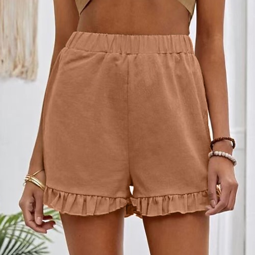 Damen Leinen-inspirierte Shorts Shorts Stoffhosen Streetwear Lässig Kurz Natürliche Taille Einfach Tasche Elastischer Bund Bequem Außenbereich Ausgehen Wochenende Dunkelrot Wein Marinenblau Schwarz