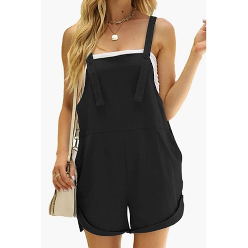 Damen Normal Leinen-inspirierte Hosen Lässig Einfarbig Ärmellos U-Ausschnitt Knöpfe Straße Täglich Normale Passform Schwarz Blau Dunkelgray Sommer