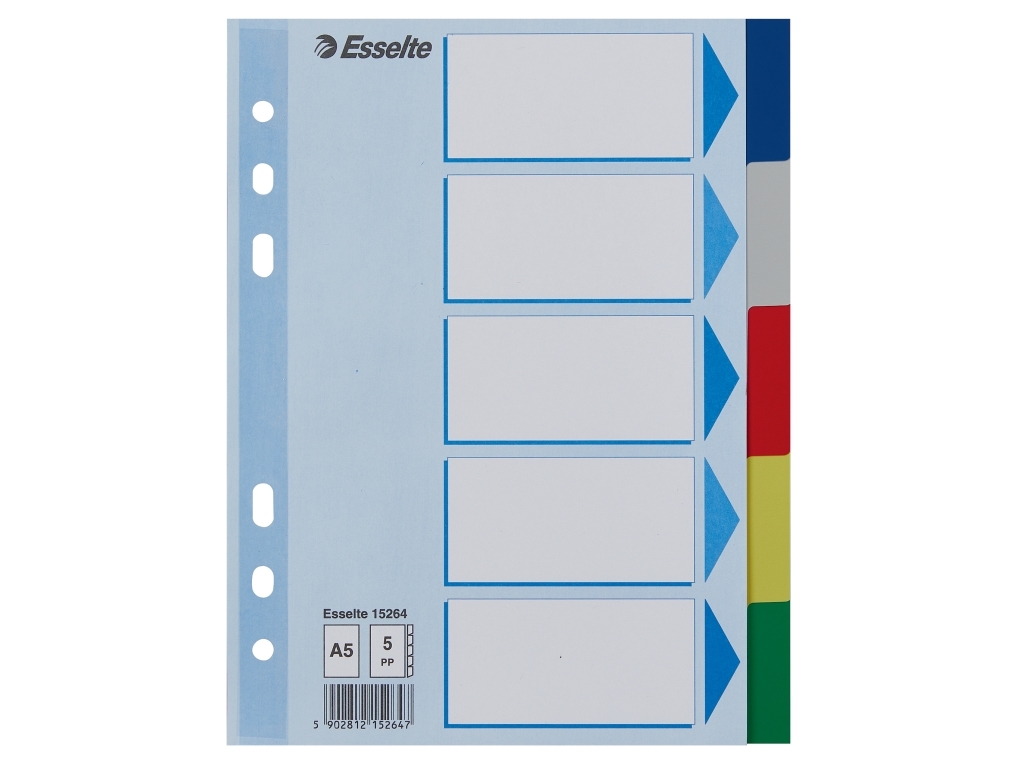 Esselte Faneblad PP A5, Blankt faneindeks, Polypropylen (PP), Blå, Portræt, A5, 163 mm