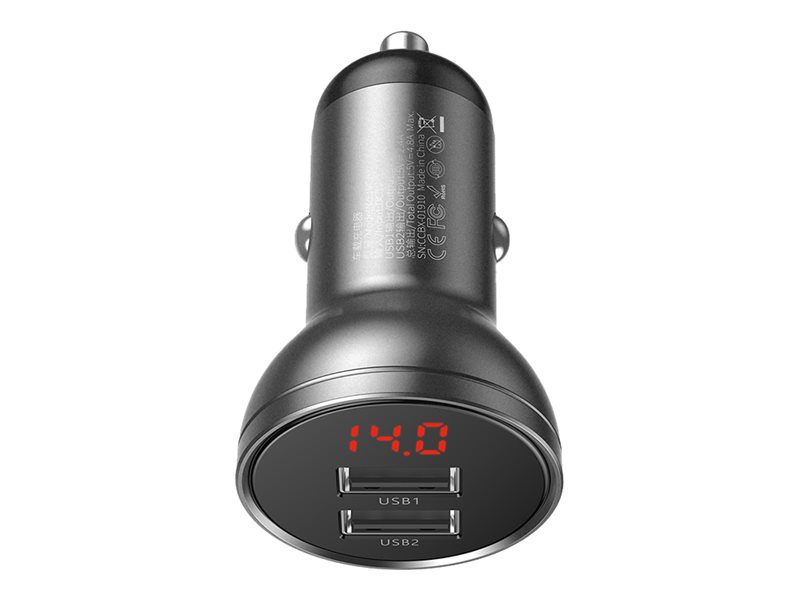 Baseus VCBXA - Bilstrømsadapter - 24 Watt - 4.8 A - 2 output-stikforbindelser (USB) - sølv, grå