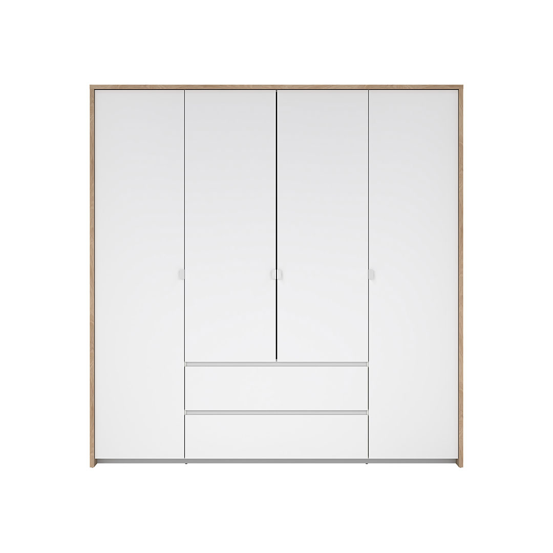 Next klædeskab 4 låger 2 skuffer 197x200cm hvid højglans