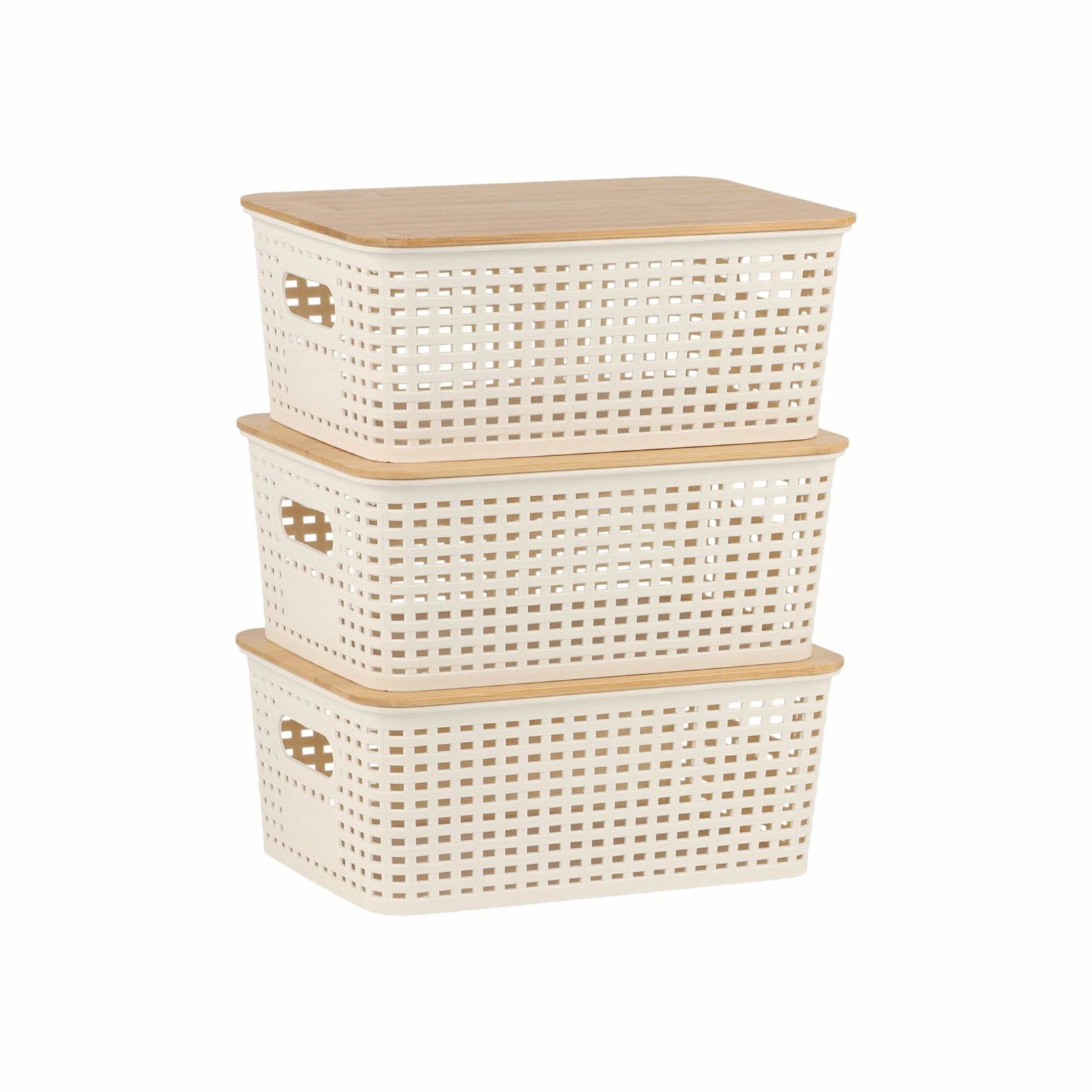 Stabelbare opbevaringskurve med bambuslåg – luftigt design
