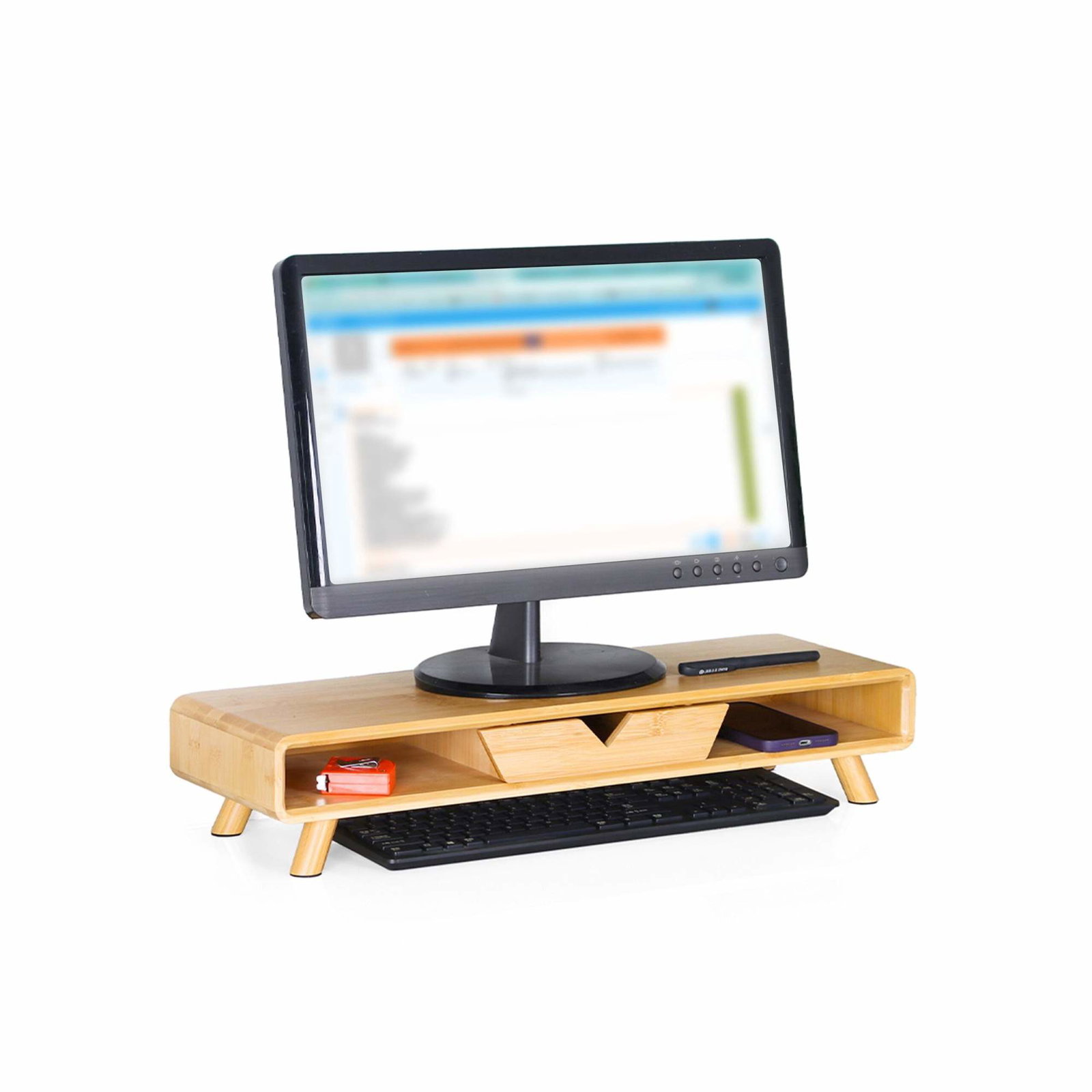 Skærmforhøjer med skuffe – bambus, ergonomisk design