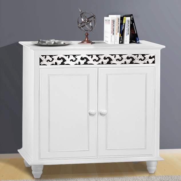 Hvidt træskab med ornamentale udskæringer, 76x65x35cm