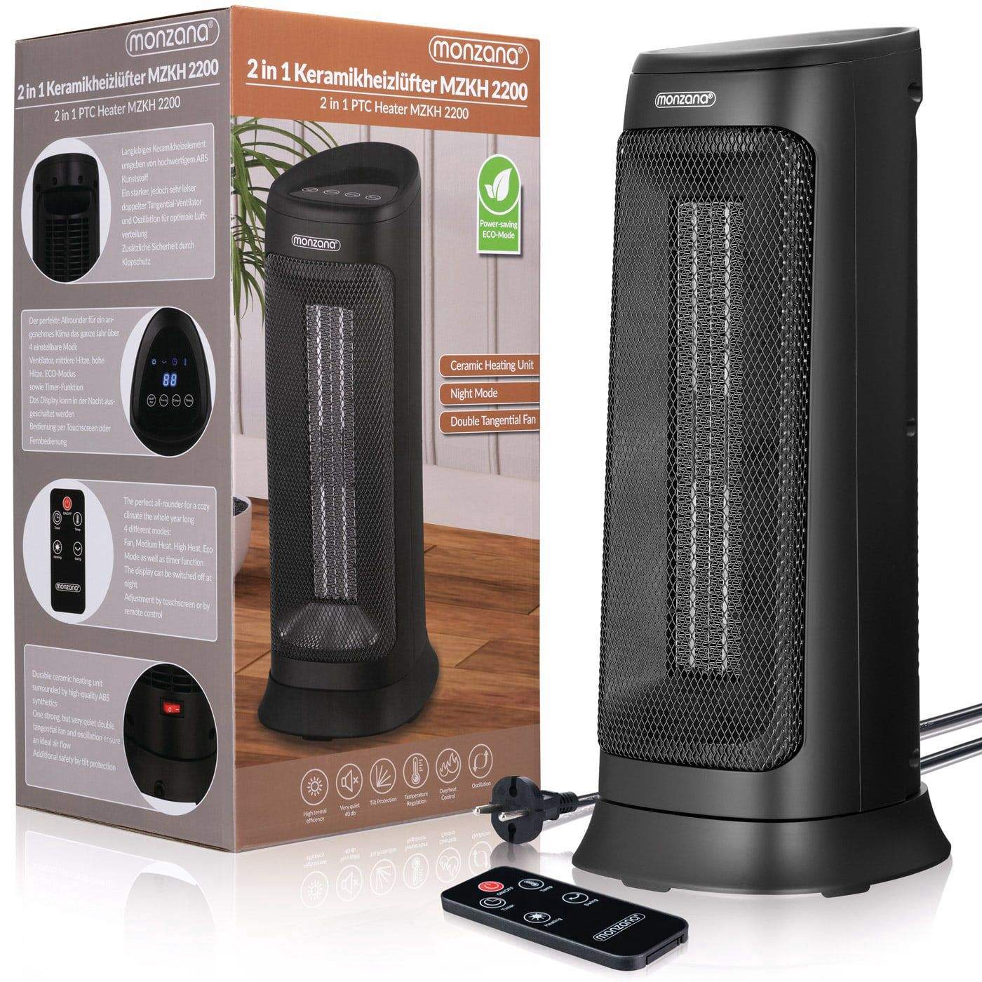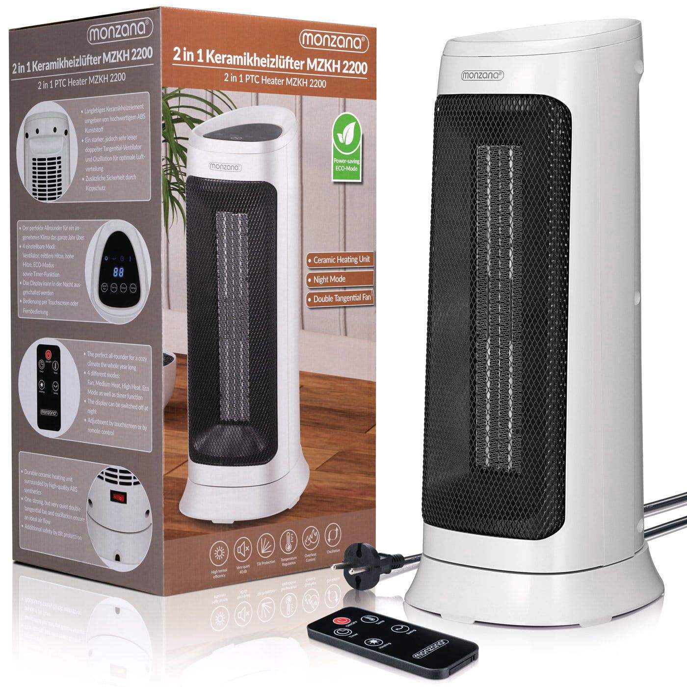 Keramisk varmelegeme 2000W, 4 tilstande, fjernbetjening