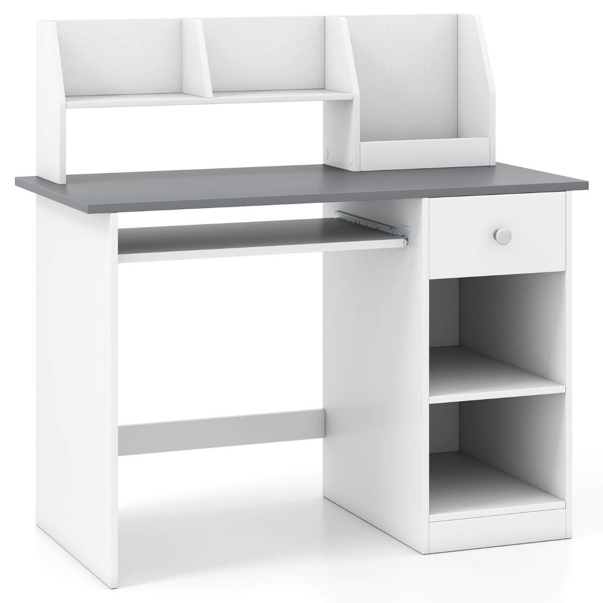 Børneskrivebord med opbevaring, tastaturbakke – grå