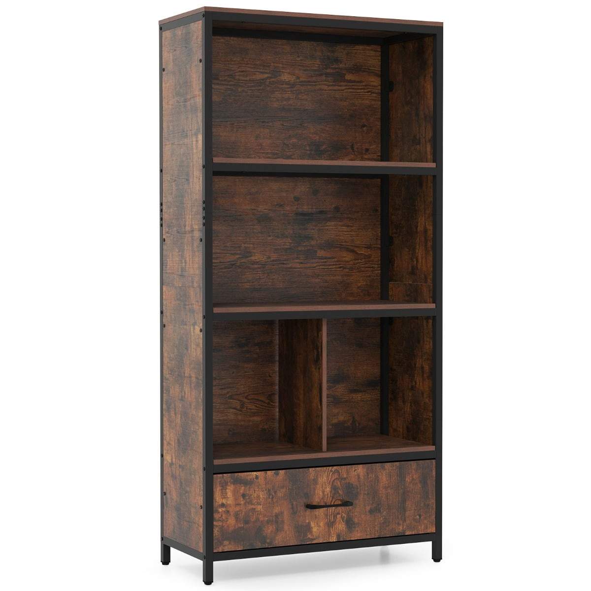 4-lags bogreol med åbne hylder og stofskuffe