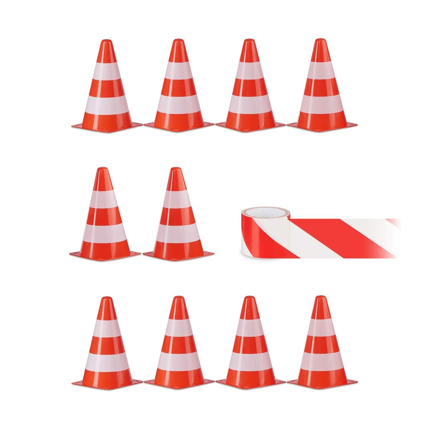 Sikkerhedskegler sæt med 10 stk. med taske og barrieretape