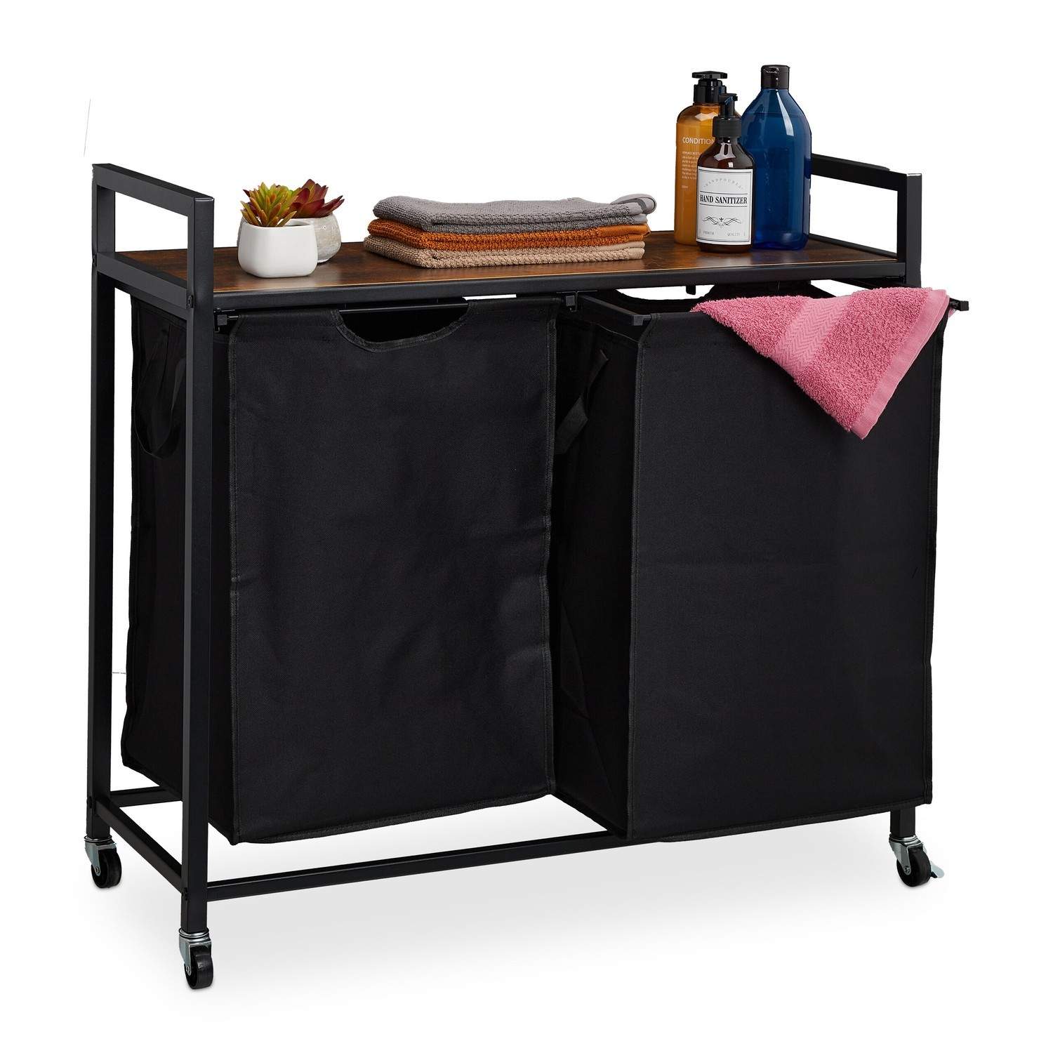 Udtrækkelig vasketøjsbeholder med hylde – Mobil og pladsbesparende
