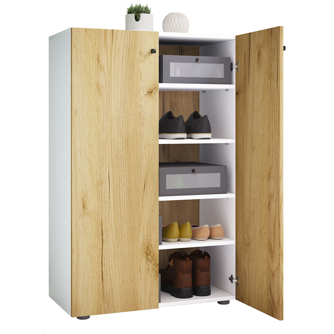 LonaXL5DT skoskab 2 låger hvid, eg dekor