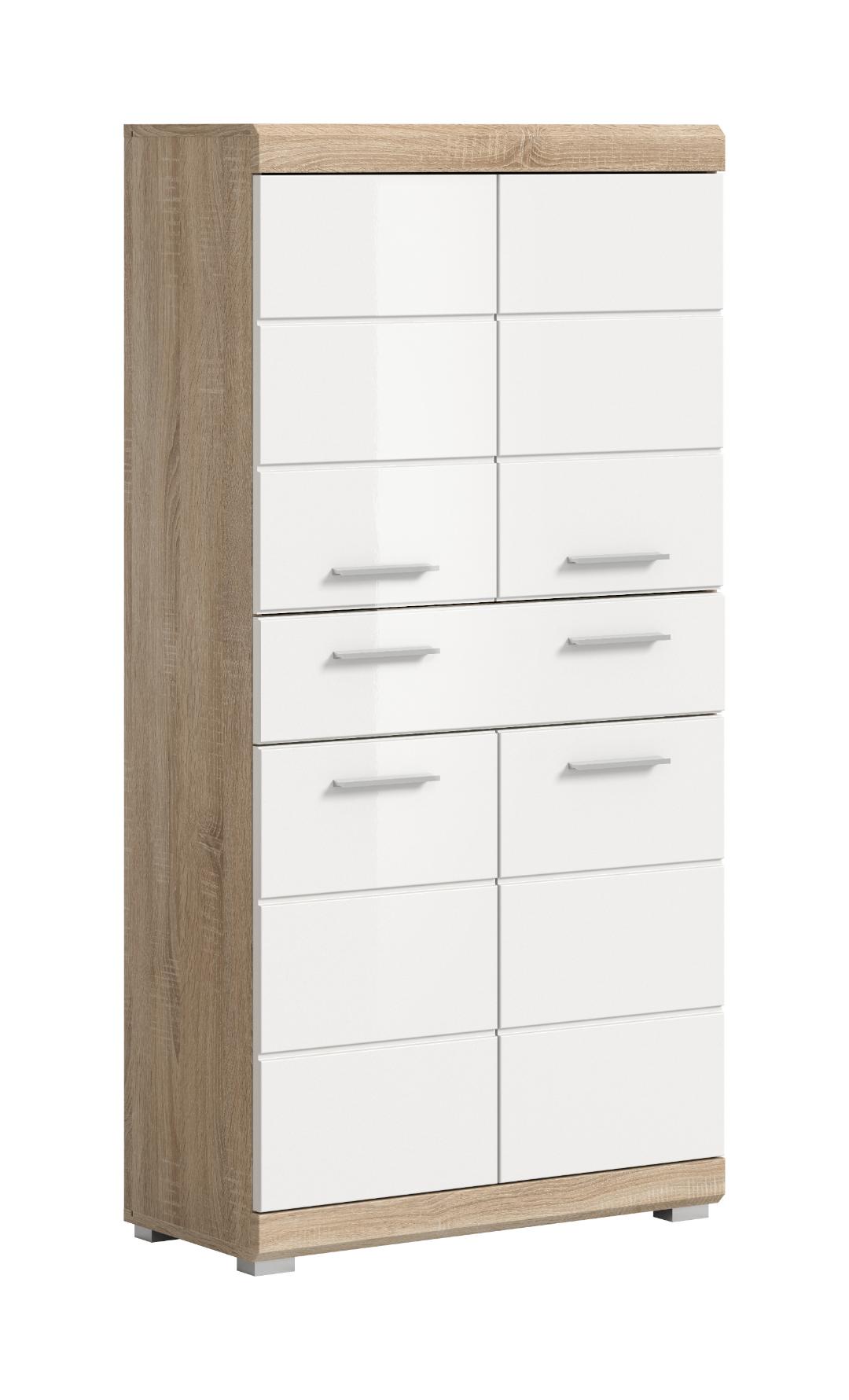 Lambada højskab badeværelse 4 låger, 1 skuffe hvid højglans, eg dekor