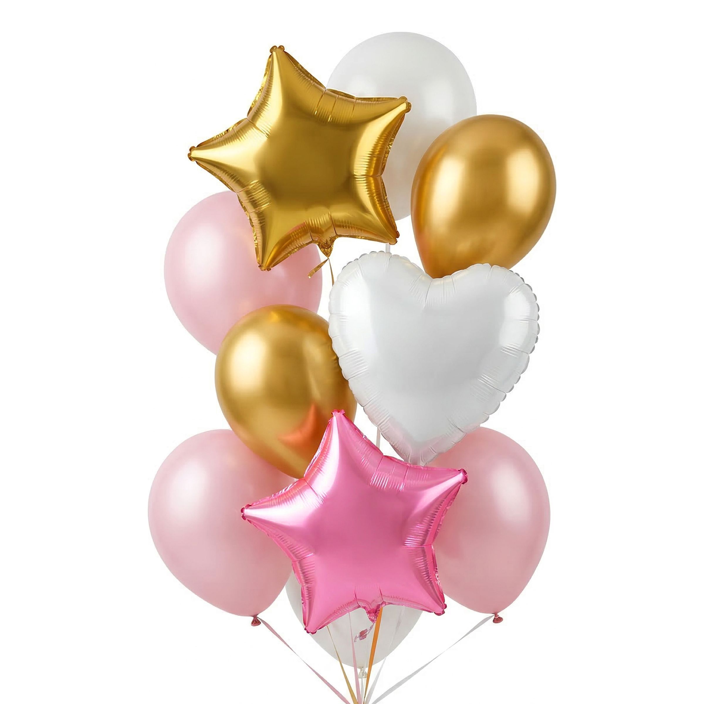 Ballonsæt Lyserød/Guld/Hvid - 10-stk