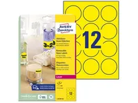 Etiketter Avery Ø63,5 mm Neongul, aftagelige - (25 ark x 12 stk.)