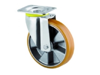 Drejeligt hjul, polyuretan, Ø160 mm, 800 kg, DIN-kugleleje, med plade Byggehøjde: 200 mm. Driftstemp