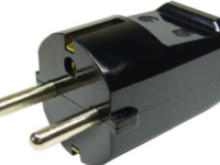 Stikprop schuko rund lige med pind jord 16A 250V plast sort