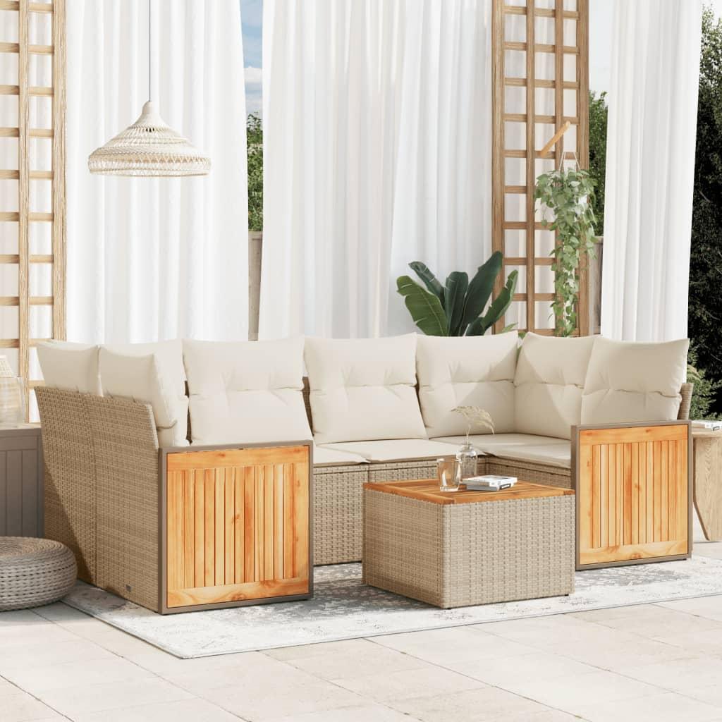 Sofasæt til haven 6 dele med hynder polyrattan beige