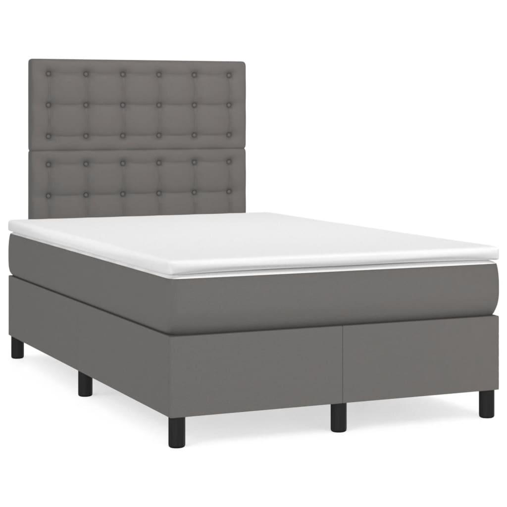 Kontinentalseng med madras og LED-lys 120x190 cm kunstlæder grå