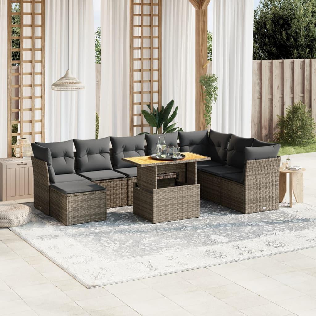 Sofasæt til haven 9 dele med hynder polyrattan grå