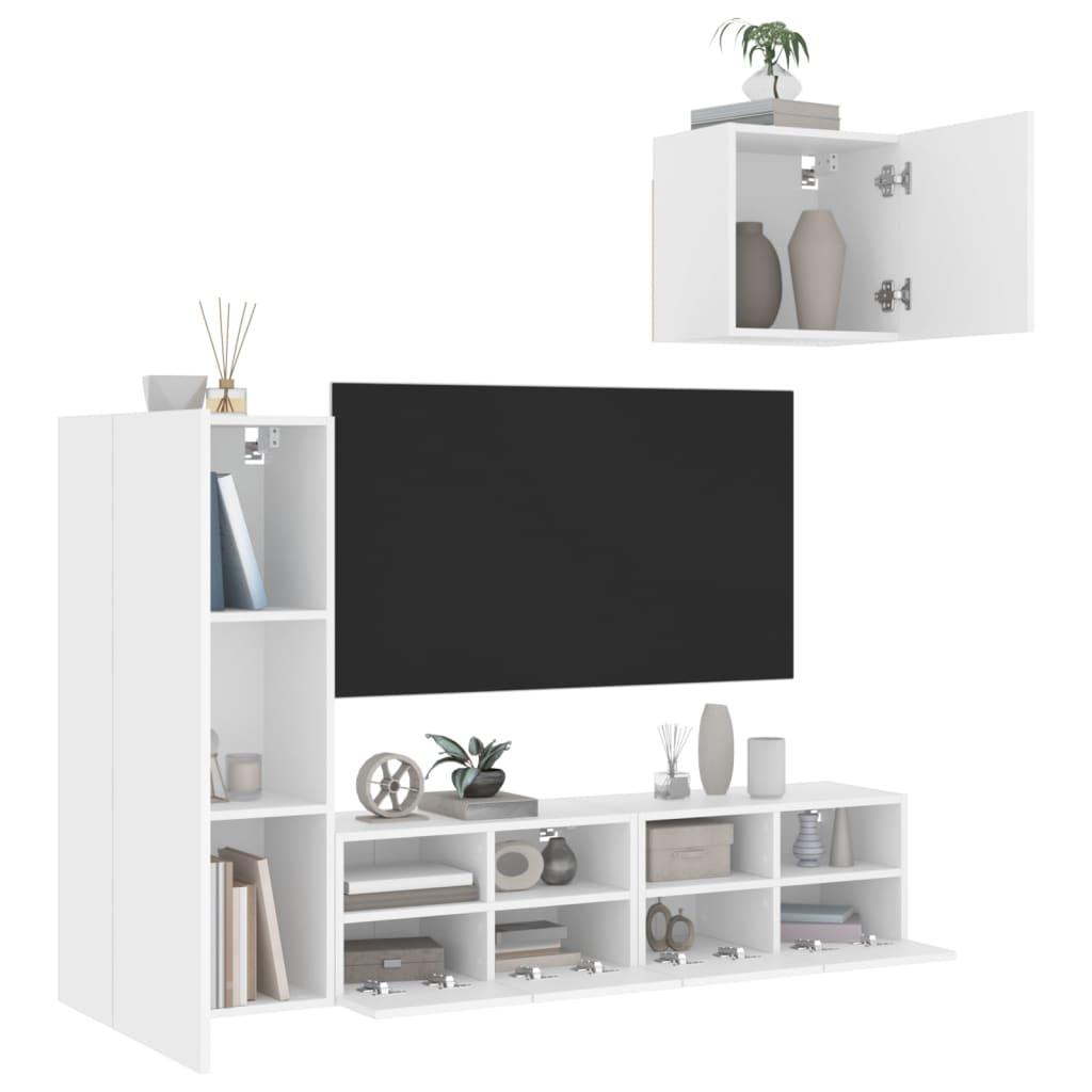 Tv-møbel til væg 4 dele konstrueret træ hvid